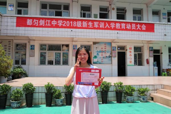 来到都匀市第二中学,正值学校开学期间,经身份核对、签字,王勇将录取通知书送到原高三13班毕业生和尹芸和李雨欣手中,两位同学激动地从王勇手中接过来自南京理工大学和集美大学的录取通知书。