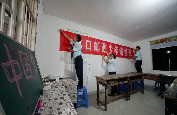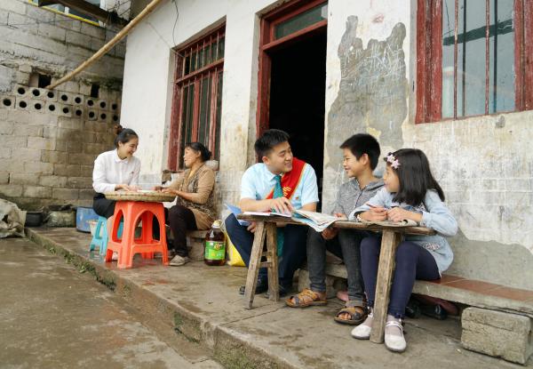 数月前,在一次走访客户途中,谭力路过一个老旧的房子,屋檐下两兄妹在板凳上一笔一划认真地写着作业,看着谭力身上的邮政制服,男孩的奶奶热情接待了他。打听得知,这是留守儿童张涛兄妹一家,父母都在外地打工,平时和奶奶相依为命。谭力问他们:“想爸妈不?”话音未落,他们的眼眶里含着泪珠。兄妹的眼神也深深刺痛了他,共产党员的责任感油然而生:“人民邮政为人民”,作为一名共产党员,谭力想着应该为当地的老百姓做点力所能及的事。何不为留守儿童办一个公益助学补习班?一来村寨上的留守儿童和城市娃一样有了假期学习的机会,二来也可以让外出务工的父母放心。