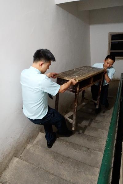 拿到林口中学捐赠的课桌,晚上抓紧布置教室 韩静桦摄