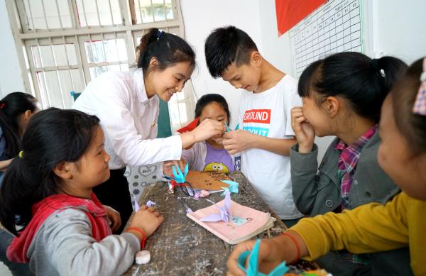 市分公司团委的同事为孩子们上爱心课 韩静桦摄