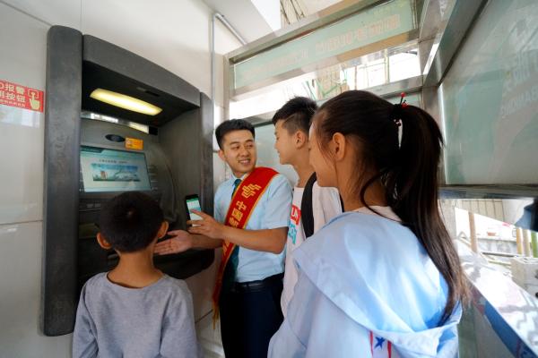 手机扫码取款,高科技的邮政业务让孩子们大开眼界 韩静桦摄