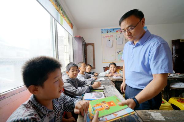 走访间隙,为孩子们检查功课 韩静桦摄