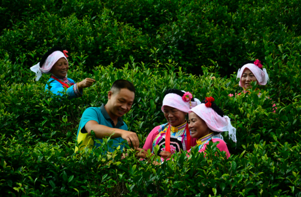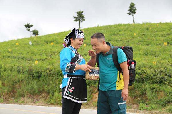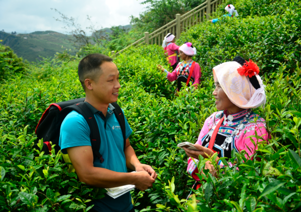高高的茶山,云缭雾绕,绿得青翠欲滴,布依茶农忙着养护茶树。“小陆哥,又来啦!”一看到陆剑波,平阳村妹子张艳就迫不及待地报喜讯,“今年都匀毛尖销得更好,一斤茶青比去年涨了60多块呢!我们劲头更高,你看,夏茶的品质都很好!”陆剑波捧起茶青一闻,笑意满脸,“香!真香!”