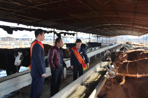 利津县支行党员来到盐窝镇盐中村养牛场调查。