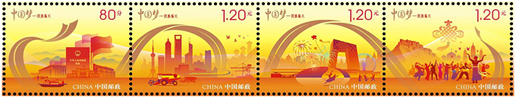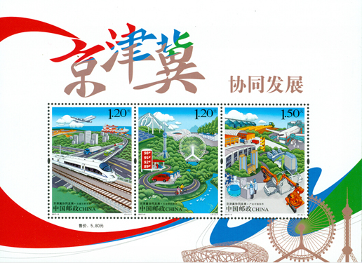 2017年3月9日,中国邮政发行《京津冀协同发展》特种邮票一套3枚,图案内容分别为:交通互联互通、生态联防联治、产业对接协作。该套邮票以交通、生态、产业的“三个突破”为表现内容,着力体现京津冀协同发展战略中先行启动的领域。该套邮票由邹庆设计。