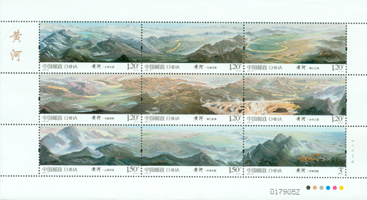 中国邮政于2014年8月23日发行《黄河》特种邮票1套9枚,邮票内容分别为:大河之源、九曲过城、塞上江南、河套穹野、壶口金涛、水环三晋、山揽河洛、中州水韵、河清海晏。邮票以九图连票,全景呈现黄河流域的自然生态和历史人文景观,展示出黄河的磅礴外貌和深厚底蕴。该套邮票采用油画的形式、散点式的构图创作而成,和2014年发行的《长江》在风格、规制上形成“姊妹篇”。设计者袁加以极强的概括能力,将各种人文景观、物质遗产和建设成就等穿插其间,犹如散布在母亲河畔的珍珠,整体构成一幅熠熠生辉的图景。