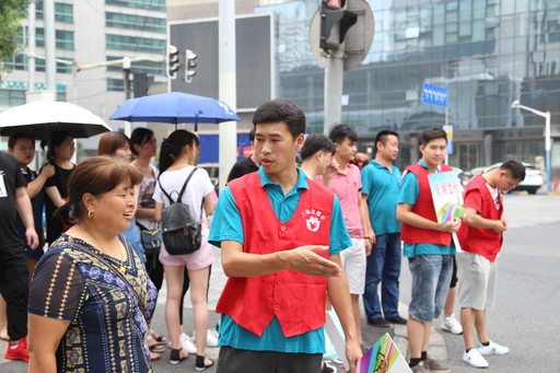 当了人大代表也要带头做志愿者。2018年7月,柴闪闪参与上海站地区文明指路志愿活动。