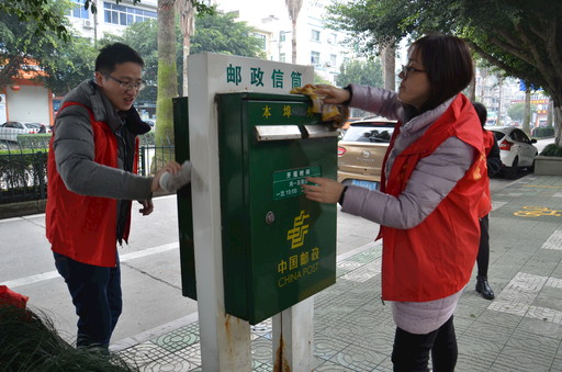 3月5日,浙江省玉环市邮政分公司开展了“擦亮‘邮名片’”志愿活动,组织广大党员志愿者对街头的E邮柜、信箱、信筒进行清洗。此次志愿活动展现了玉环市分公司党员积极向上的精神风貌。□叶玮 摄影报道