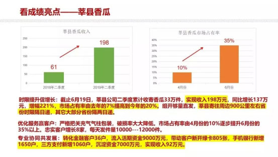 山东邮政在重汽物流市场、莘县香瓜市场、网点综合服务、跨境电商产业园融合发展、海尔物流源头获客、大樱桃项目运作等方面亮点突出,取得了不俗的成绩。