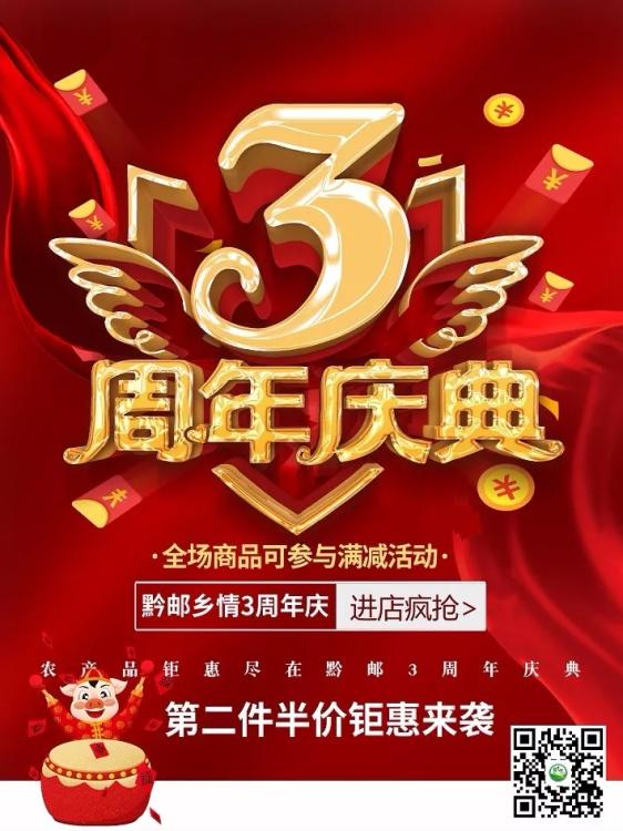 为回馈广大黔粉,黔邮乡情商城举办三周年店庆活动。优惠多多,快来参加吧~![]()