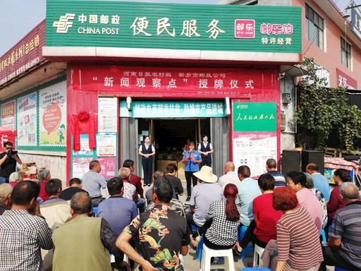 “非常荣幸能成为全市首个邮政便民服务站‘新闻观察点’,俺一定当好‘新闻观察员’,宣传好村里的好人好事!”日前,河南省辉县市冀屯镇褚邱村邮政便民服务站负责人焦新安对自己的服务站挂上村级“新闻观察点”的牌匾表态道。“新闻观察点”是基于服务“三农”的共同目标,新乡市邮政分公司与《河南日报》农村版联合打造的。据悉,双方在新乡市邮政便民服务站陆续设置500个村级“新闻观察点”,挑选80~100名优秀服务站负责人成为“新闻观察员”。“新闻观察员”的职责是提供各类新闻线索,包括乡村移风易俗、贫困户脱贫、乡村振兴等新人新事新风尚,聚集正能量,营造党建引领、红心向党的氛围。□梁晓卫 摄影报道