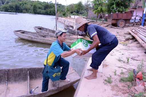 一次恰逢台风天,有份药品急件从广东寄回当地最偏远的大崇村,收件人是常年体弱多病的王老伯。望着乌云密布的天空,韦仕标没有多想便骑着摩托车赶至江边,撑起船桨摇摆至大崇村,只为了早一点将药品送给王老伯。