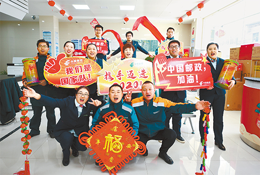 2020年是全面建成小康社会的决胜之年,对于刚刚改制的中国邮政来说,又将是激动人心的一年。站在新的时间节点,一线员工正以全新面貌投入到推进企业高质量发展之中。图为江苏省徐州市铜山区大黄山邮政支局员工喜迎新年。 □刘立明 摄影报道