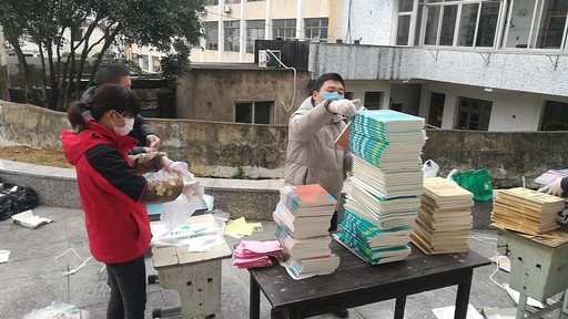 2月15日起,为解决学生无课本学习难以及邮政寄递学生教材时间紧、任务重、人手缺问题,邮储银行浙江省台州市分行辖内各党支部成立党员先锋队,主动联系邮政企业,担负起书籍搬运、打包、贴面单、集中分拣等工作。