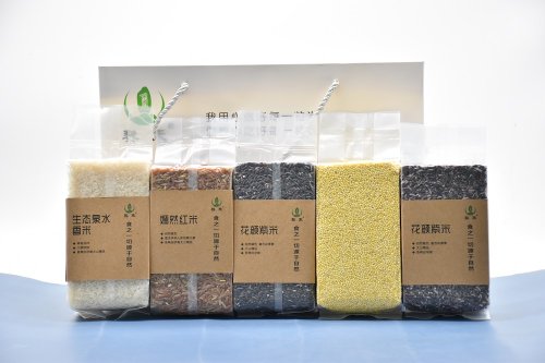 这款花粥米,是精选出5种优质米分层组合成的,分别有:生态泉水香米、嫣然红米、糯小米、花颜紫香米、花颜紫糙米。