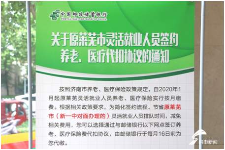 按照济南市社保政策规定,原莱芜灵活就业人员养老、医疗保险2020年起采用与济南市统一的按月缴纳方式。本着“普之城乡,惠之于民”的经营理念,邮储银行莱芜分行积极联系当地社保部门,争取业务合作机会。自2019年12月中旬起,邮储银行莱芜分行确定了与济南市钢城区社会保险事业处、济南市莱芜区医疗保险事业服务中心、济南市莱芜区社会保险事业处三个单位对灵活就业人员缴费项目的合作。