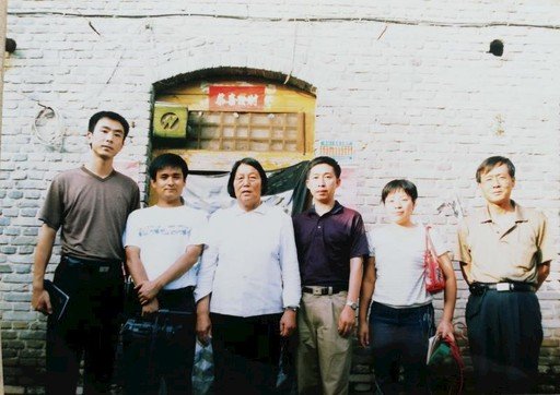 2003年8月,作者(左二)一行与申纪兰(左三)合影留念。