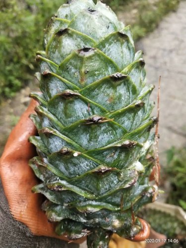 刚摘下的松塔鲜翠欲滴,仿佛凝聚了一整颗松树的精华,新鲜地仿佛还带着满满的松脂