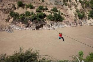 尼玛拉木至今仍记得第一次过溜索的场景:她站在江边,面对呼啸的狂风和咆哮的江水,回忆起沉寂在江中的弟弟,心里一阵阵发怵,鼓不起勇气。 “我鼓励自己,拉木你能行”, 可当钩子挂上溜索的一瞬间,尼玛拉木浑身一点力气都没有了。桑称所长用力推了她一把,就这样,尼玛拉木被吊在半空中,耳边只剩下急促的风声和脚下的滔滔江水声。