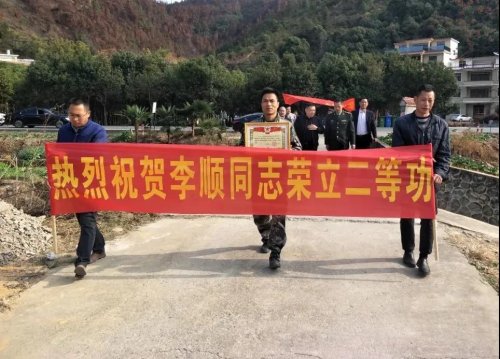 现场为立功军人竖起大幅海报