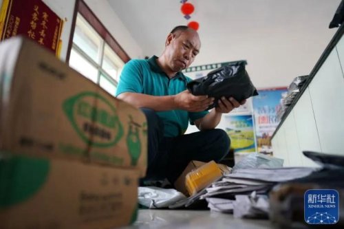 赵月芳在位于壶关县大峡谷镇鹅屋村的邮政所内分拣快递(7月14日摄)。新华社记者 詹彦 摄