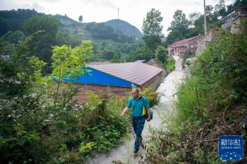 在山西省壶关县大峡谷镇鹅屋村,赵月芳走在为村民送件的路上(7月14日摄)。新华社记者 杨晨光 摄
