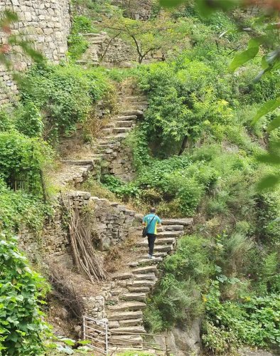 “记忆中,我上初中时才第一次走古道下山,到乡里上中学。”据张海根介绍,岳家寨村群山环绕,过去仅靠一条悬崖边的古道与外界相连。村民靠肩背膀挑把山货运下山,再把生活物资运上来。