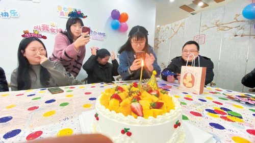 1月12日中午,浙江省台州市邮政分公司组织当月过生日的14位员工“寿星”欢聚一堂,开展“送上一碗生日面”活动。