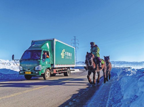 1月下旬,记者一行跟随邮政人的脚步深入新疆维吾尔自治区基层群众中,探访藏在深山雪海中的冬日“绿动”。