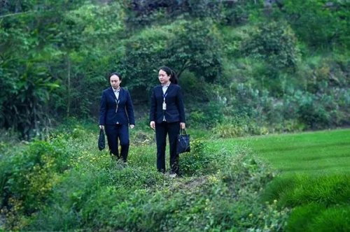 邮储银行重庆分行工作人员走访农田了解农作物种植情况。邮储银行重庆分行供图