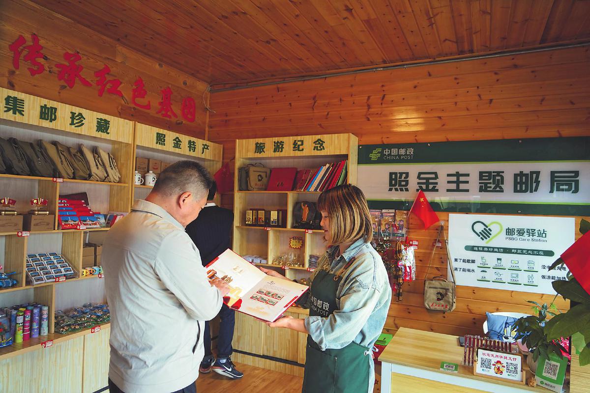 今年国庆长假期间,位于陕西省铜川市的红色照金主题邮局开展了“庆祝新中国成立75周年”集邮文化产品展销活动,受到广大游客和集邮爱好者称赞。10月1日当天,邮迷张先生来到主题邮局,连连称赞道:“在举国欢庆新中国成立75周年之际,在主题邮局购买这些红色主题邮品,颇具纪念意义!祝愿我们伟大的祖国越来越好,越来越强!”从河南专程来到陕甘边革命根据地旅游的孙先生给孩子购买了几枚明信片。他深有感触地说:“主题邮局里的这些文创产品,可以帮助孩子们更好地了解中国革命史,很有教育意义!”