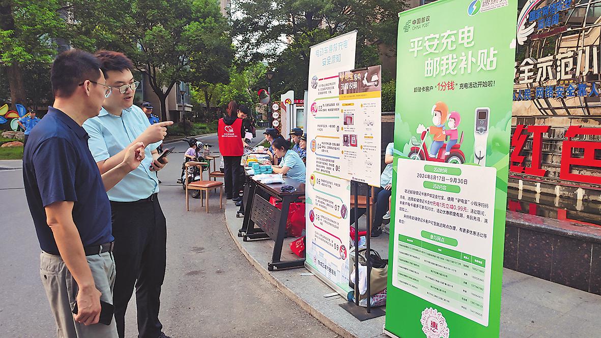 夏深秋浅,走进江苏省宿迁市凤凰美地小区,单元楼下崭新的电动自行车停车棚非常醒目,棚内设有充电桩与多处充电插孔,居民的电动自行车整齐排成一列充电。“在微信上绑定邮政储蓄卡,只需支付1分钱,就可以给电动车充满电了,既方便又实惠。”享受到邮政便捷又优惠的支付服务,小区居民张大姐开心不已。