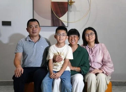 这是在位于江西省铅山县县城的家中,罗细英(右二)与家人合影(9月27日摄)。新华社记者 万象 摄