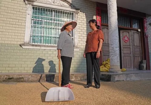 这是在江西省铅山县陈坊乡沽溪村,罗细英(右)与相识的村民温春香叙旧(9月28日摄)。新华社记者 万象 摄