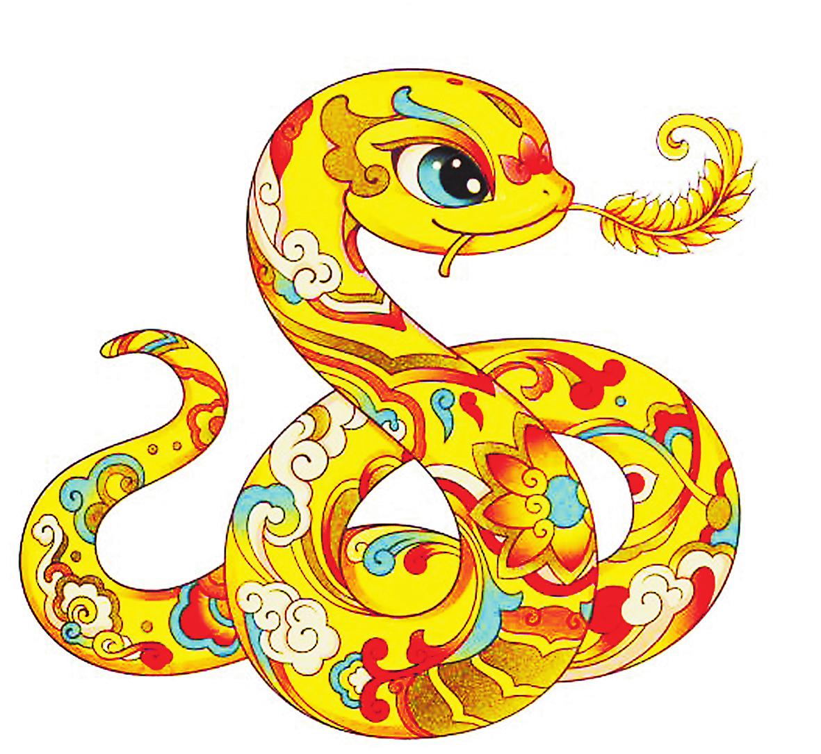在生肖动物里,蛇的设计难度是比较大的。蛇的形象具有两面性,它有着吉祥的象征寓意,外形却又容易让人产生畏惧感。那么,如何让设计的蛇的形象能够被大众接受,是我这次创作面临的主要挑战。我希望塑造的蛇是对人亲近的,是活泼可爱、圆润丰满的,所以就通过灵动的线条和姿态来表现其造型,在画面上实现传统与现代审美之间的平衡。