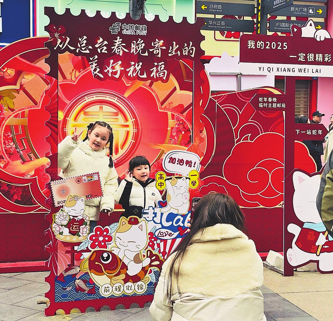 四川 成都市邮政分公司与成都铁路传媒共同在成都东站打造春晚临时邮局。该临时邮局为往来旅客准备了8枚生肖文化纪念章、《从2025年中央广播电视总台春节联欢晚会寄出的美好祝福》系列邮资封等邮品,引得旅客纷纷打卡购买。□王妆砚 龚静琳 摄影报道