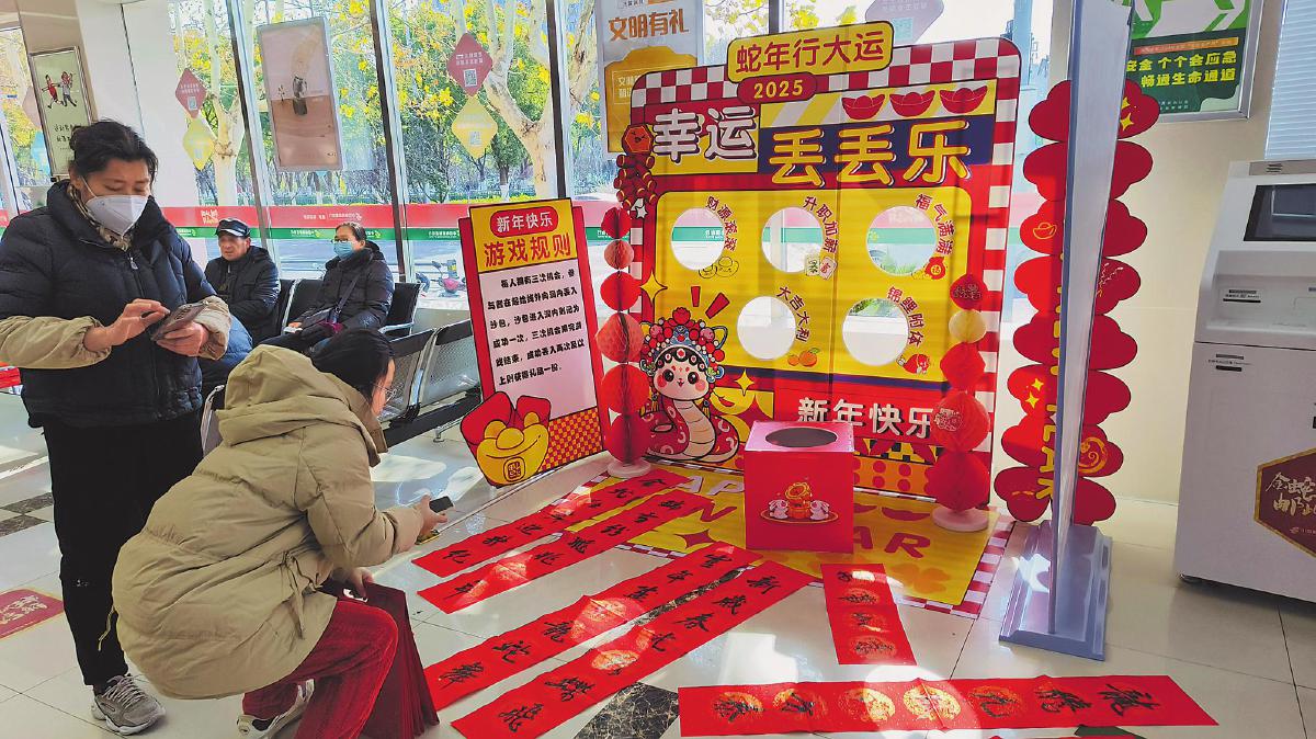 湖北 荆门市邮政分公司联合荆门市文旅局、中邮保险湖北分公司举办了“‘邮’点年味儿 文体过大年”主题新春游园会。游园会以年味民俗为切入点,设置了公益服务区、权益体验区、民俗体验区、趣味游戏区等主题专区,赢得了市民一致赞誉。□徐敏 摄影报道
