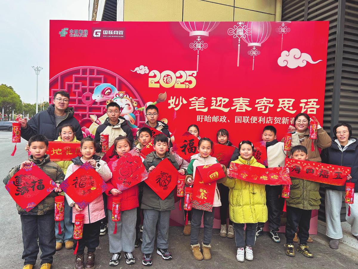 江苏 盱眙县邮政分公司邀约全县中小学学生代表参加“妙笔迎春寄思语”活动。同学们一笔一划地书写出对新年的美好祝愿。□陈洁 摄影报道