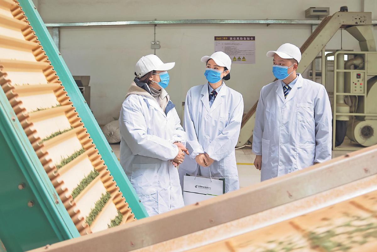 贵州省分行员工走进兰馨茶业有限公司了解茶叶加工情况。□凌眉 文/图