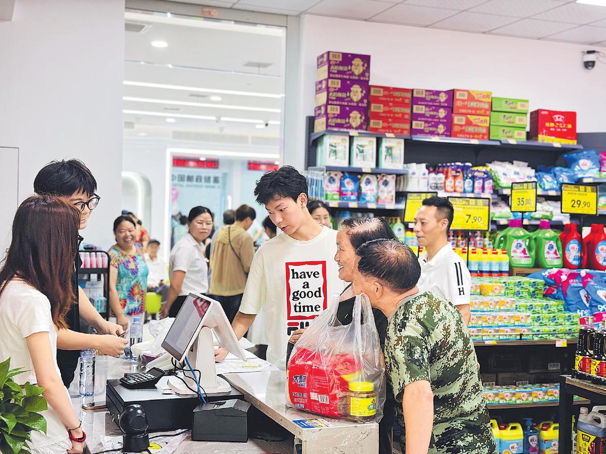 诸暨邮政网点管理人员在王家井好又多综合便民服务站巡店,并与掌柜交流业务开展情况。