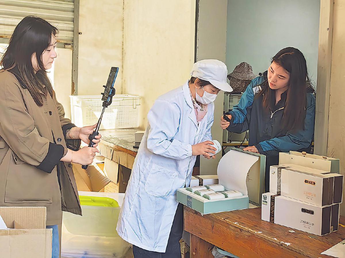 “她”力量是脚踏实地走好每一步。史秋蓉(右)是江苏省溧阳市邮政分公司农产品助销选品员。阳春三月,溧阳春茶吐翠,史秋蓉和同事一起走进茶企,实地考察茶叶生态种植环境,免费帮助茶场拍摄展示茶叶采摘、制作、包装等全流程的宣传视频,扩大春茶宣传面,助力溧阳春茶“走出去”。□查叶娟 摄影报道
