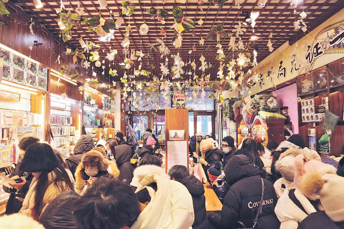 在富有欧陆风情的哈尔滨中央大街主题邮局里,游客争相选购产品,加盖纪念戳。 □张丹丹 摄