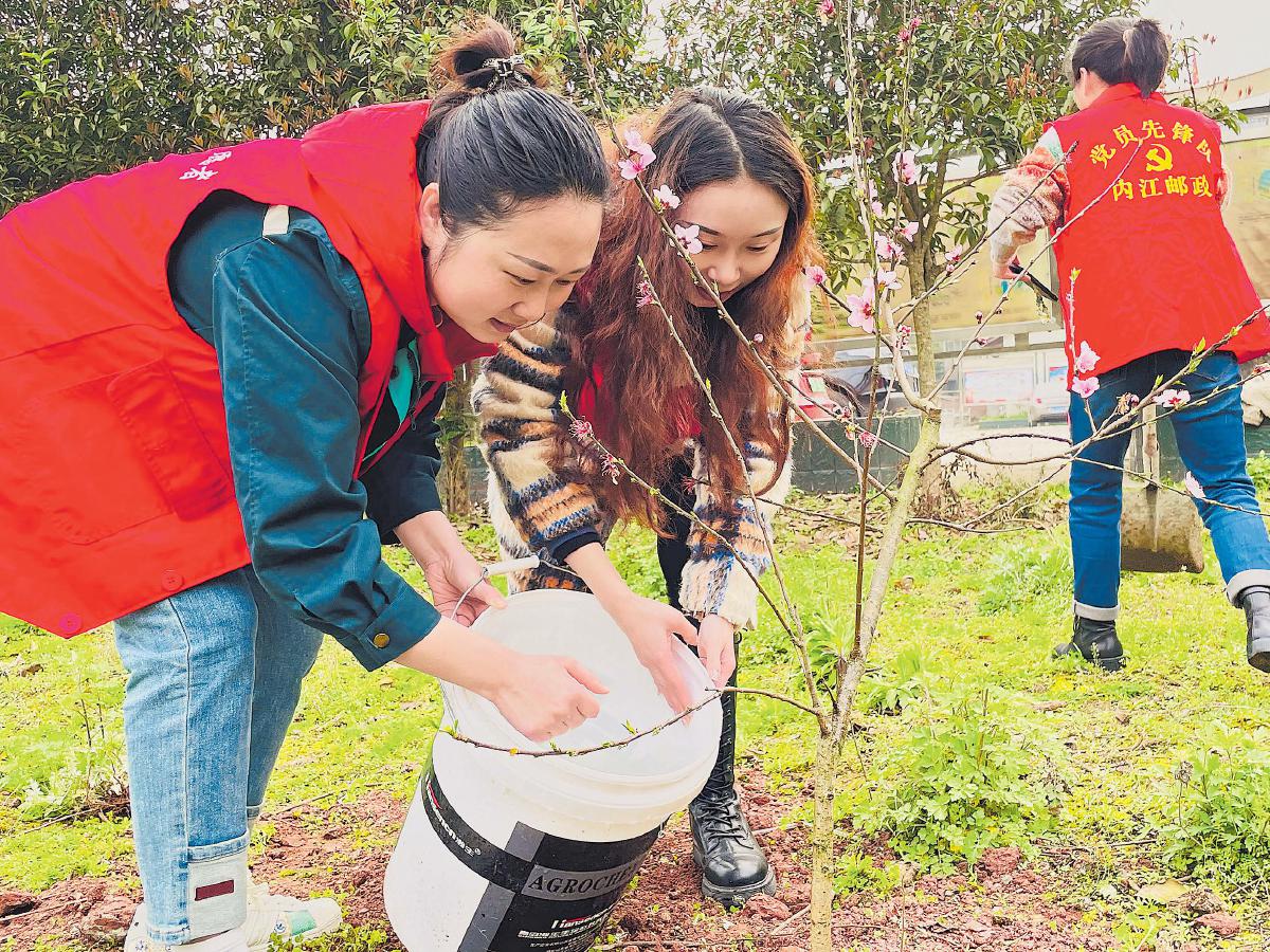 3月12日,第47个植树节来临之际,四川省内江市东兴区邮政分公司党支部组织开展了“手植一棵树 绿化一片天”义务植树活动,并号召全体员工积极参加“邮驿传情、绿化三北”邮政示范林公益项目植树捐赠活动,强化绿色发展意识,为深入推进环境保护贡献力量。
