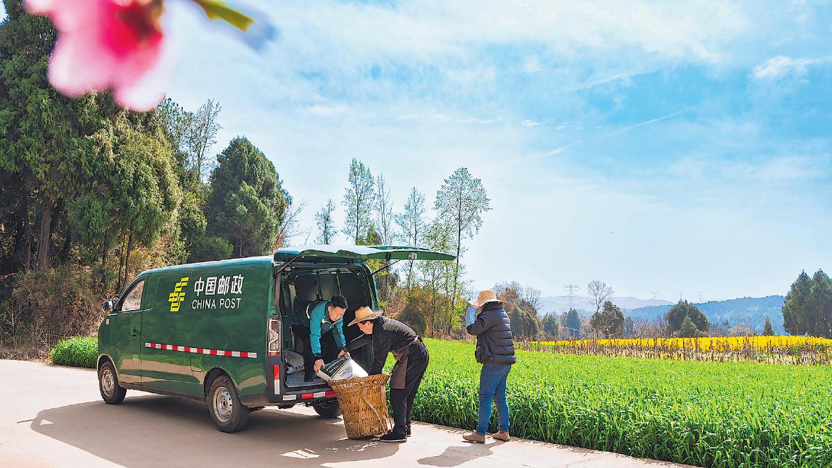 从盆地丘陵到平原,再到山区、高原,一抹抹邮政绿与田野的绿色相互交织,构成了一幅充满生机与活力的美丽画卷。